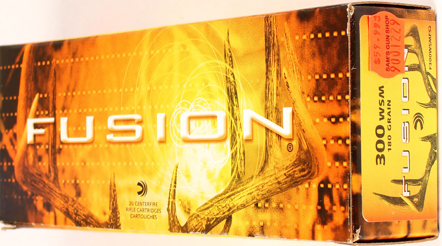 Federal Fusion, 300 WSM, 180 Grain, Full, 1pc. multi-colored box, box is solid with excellent color, Ammo is excellent. Grade: Excellent ++ - Value: 20 to 80