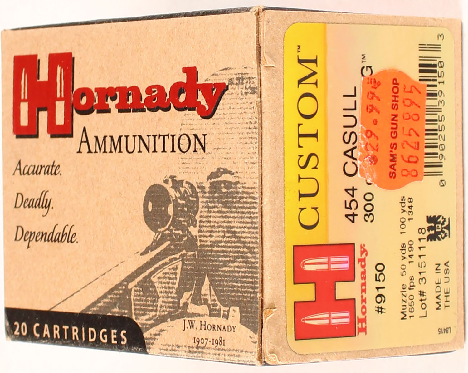 Hornady, 454 Casull, 300 Grain XTP Mag, Full, 1pc. multi-colored box, box is solid with excellent color, Ammo is excellent. Grade: Excellent ++ - Value: 20 to 80