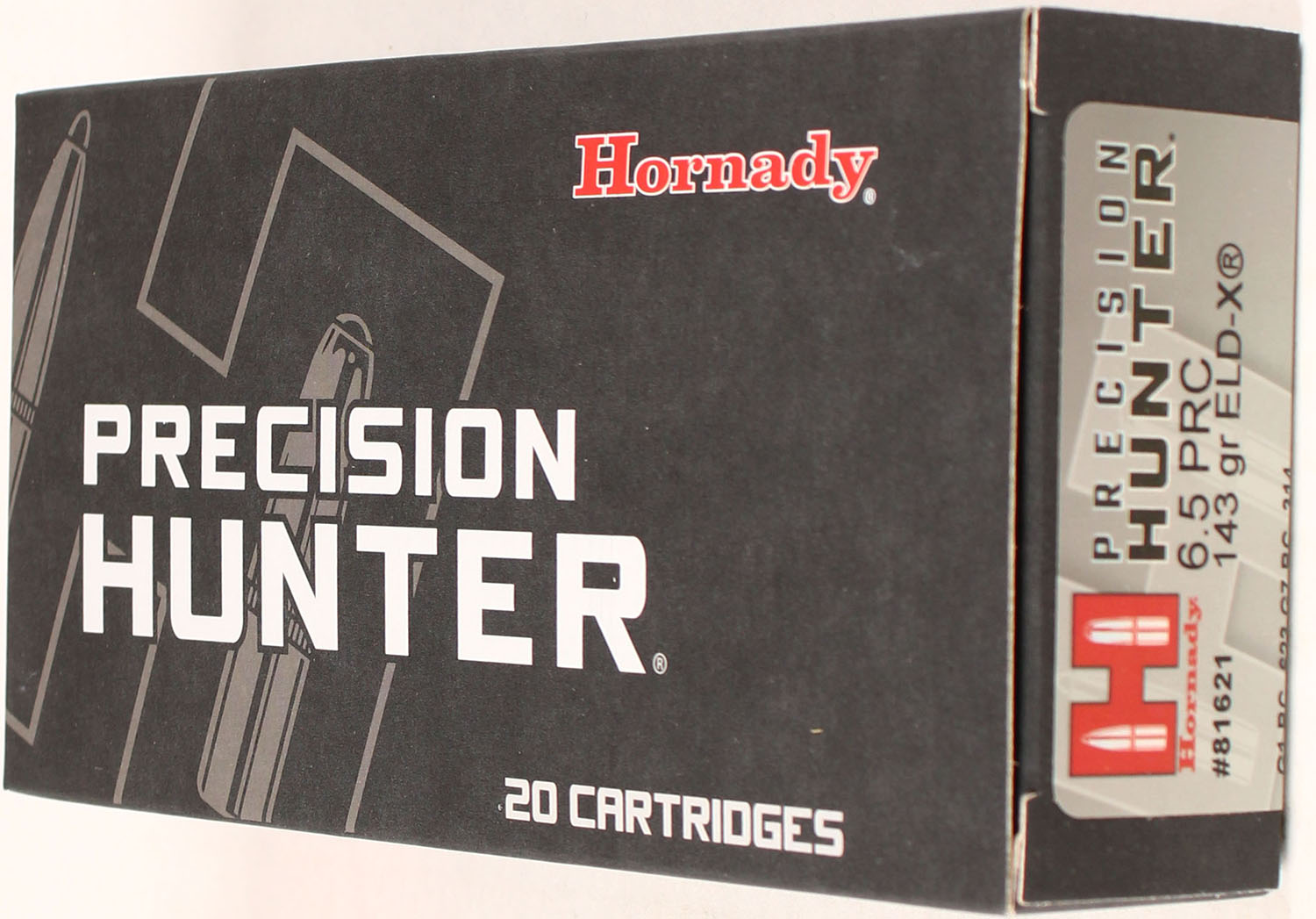 Hornady, Precision Hunter, 6.5 PRC, 143 Grain ELD-X, Full, 1pc. multi-colored box, box is solid with excellent color, Ammo is excellent. Grade: Excellent ++ - Value: 20 to 80