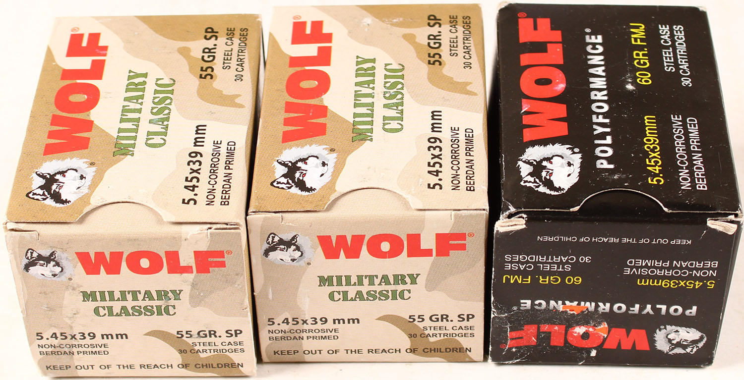 | Wolf, Lot of (3), 5.45x39mm, 60 Grain FMJ/55 Grain SP, FULL & S...
