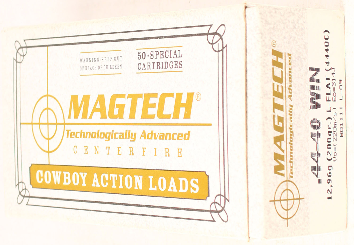 Magtech, Cowboy Action Loads, 44-40 Win, 200 Grain L-Flat, Partial 45rds, 1pc., Multi-colored box, box is solid with great color, Ammo is excellent. Grade: Excellent ++ - Value: 20 to 80