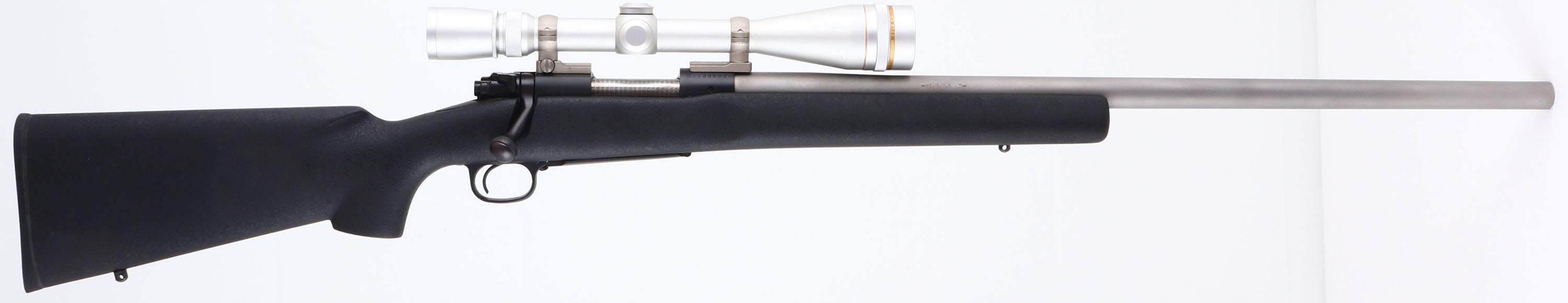 Winchester, Model 70 SA, CAL: 22-250 REM, MFG: 1990's, SN: G2133590, Bolt Action Rifle, 26'' ''Heavy Varmint'' barrel. The original synthetic pistol grip stock is excellent, with very few handling marks to the original textured finish. The stainless steel finish on the barrel is excellent. The metal blue finish on the receiver rates 99% overall. Bore is excellent. The receiver holds a Leupold Vari-X III 6.5 x 20 scope. Sling studs present. Stock carries a solid black rubber recoil pad. A virtually new & excellent varmint rifle. FFL Req. - Value: 600 to 1200