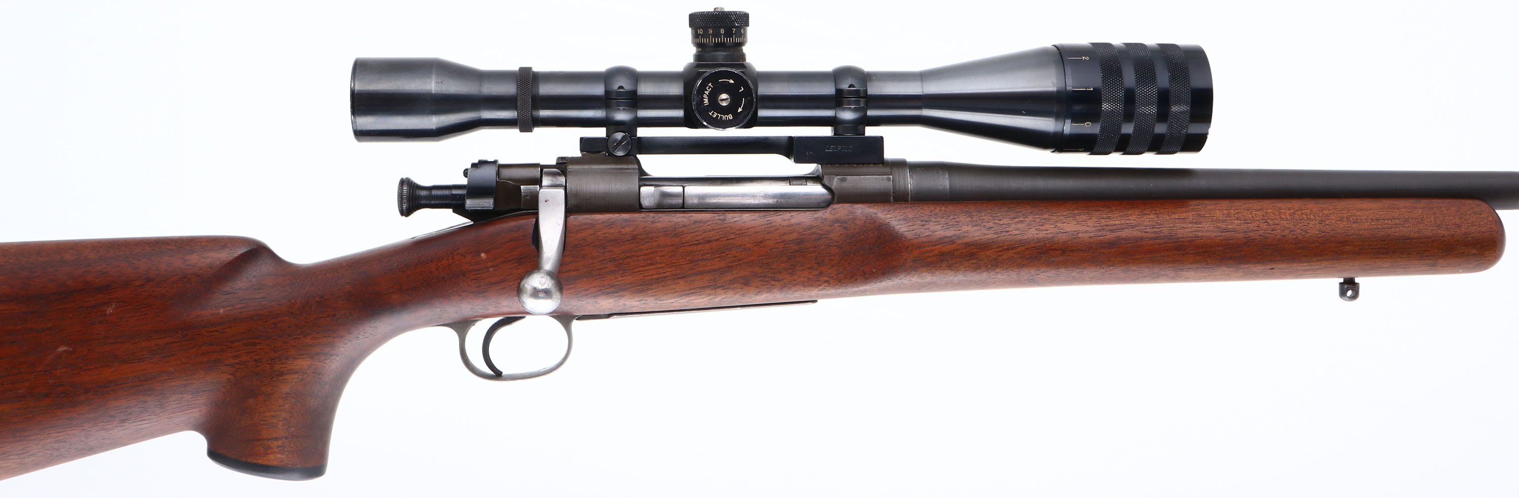 Custom Rifle, Remington, Model 03-A3, CAL: 30-06, MFG: 1942 (Receiver), SN: 3563133, Bolt Action Rifle, 26'' barre including the muzzle break. The capped pistol grip wood stock, with beaver tail forend is excellent. There are minor contusions & scrapes to the finish. The original military style metal finish is excellent, with light spotting. Bore is excellent. Barrel marked ''RA'', a fire bomb ''12 43'' at muzzle end, ''XA60'' half way down the barrel & some proof stamping at the receiver end. The receiver holds a Weaver Micro-Trac T-10 scope. No open sight provisions. Pachmayr solid recoil pad. Sling studs. FFL or C&R Req. - Value: 300 to 600