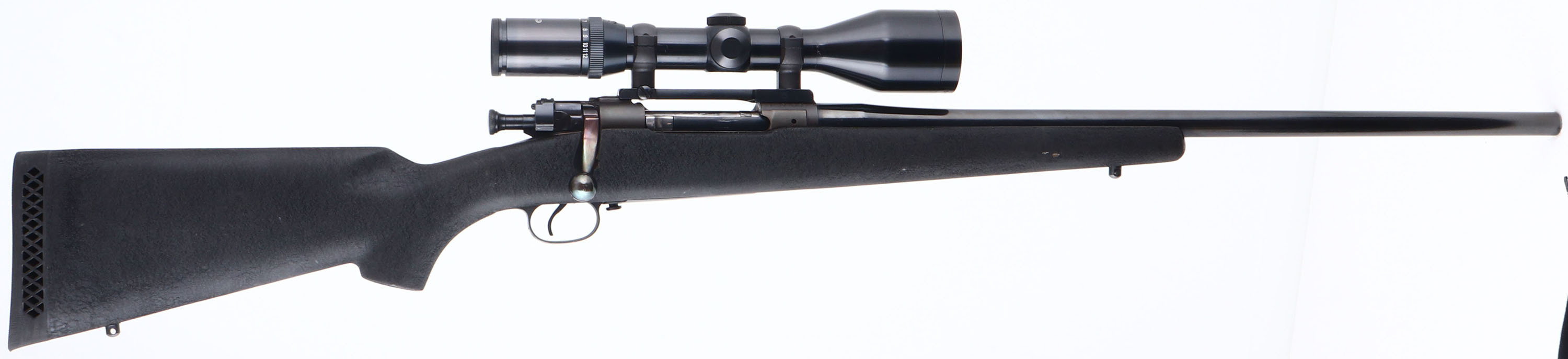 Custom Rifle, Springfield, Model 1903 Action, CAL: 25-06, MFG: 1933, SN: 1439839, Bolt Action Rifle, 22 1/2'' GR Douglas barrel. The textured flat pistol grip composite stock is excellent. There are minor nicks & dings to the textured finish. There are also chips missing from the edge of the bolt notch. The metal blue finish on the barrel rates 97%. The receiver has a military style gray finish, toning to a plum patina mostly on the left side.. Bore is excellent. The receiver holds a Tasco Euro Class 3-12x52 scope, on a Redfield scope mount. No open sight provisions. Sling studs. Pachmayr ventilated recoil pad. A nice custom hunting rifle built off a 1903 action. FFL or C&R Req. - Value: 400 to 800