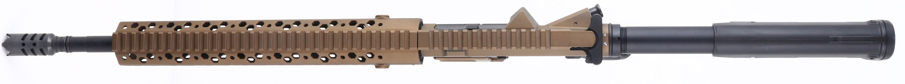 NEW R&J Firearms Model AR-15 PREMIUM, CAL: 5.56 (.223), MFG: Modern, SN: RJ00430, Semi Auto Rifle, 16'' R&J Custom Ballistic Advantage barrel, with 1:7 twist, 18'' with R&J' s exclusive Crown brake flash suppressor. Metal alloy billet upper & lower. Nitride M16 carrier group. Premium Bronze baked Cerakote finish. Factory 20'' picatinny rail runs full length top of receiver & 13'' Devil Dog octagon handrail, for future sight, scope & accessory installation. Additional 2 1/2'' picatinny rail on the bottom of handrail. Premium Rodgers slide adjustable, 6pt lock in place super-stock. Mint Bore. Condition is FACTORY NEW & ready for your customization. Comes with factory 30 rd magazine, lock & paperwork. FFL Req. - Value: 1400 to 2000