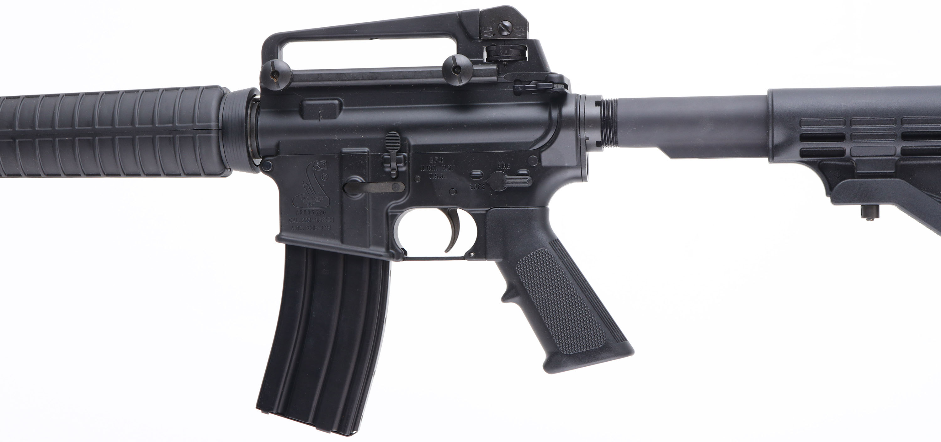 NEW, BOXED, Bushmaster, Model XM15-E2S, CAL: 5.56, MFG: Modern, SN: ARB36620, Semi Auto Rifle, 17 1/2'' barrel. The 6pt adjustable composite stock, checkered grip & grooved forend are excellent. The factory matte black finish is excellent, rating 99%, with minor storage & handling marks. Bore is excellent. Factory iron sights. Sling studs present. Comes in original box, with paperwork, black cloth sling & 30rd mag. NOS. FFL Req. - Value: 700 to 1300