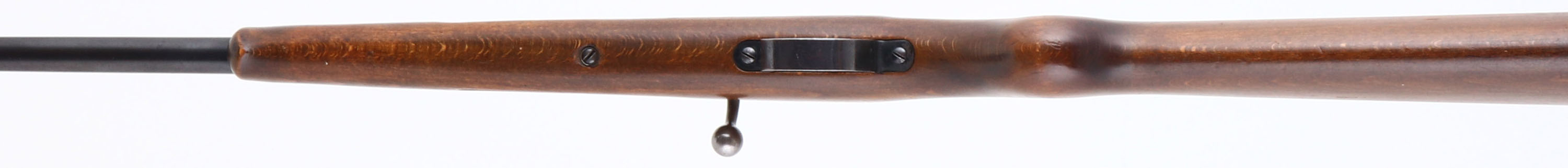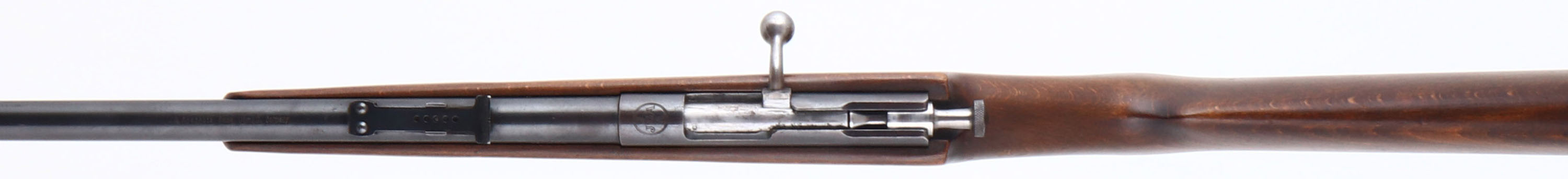 J.G Anschutz, German Parlor Rifle, CAL: 4mm RANDZ RF (SMOOTHBORE), MFG: 1930's (Pre-War), SN: NSN, Bolt Action Rifle, 22 1/2'' barrel. The top of the barrel is marked ''J.G Anschutz GmbH U/m/D. Germany'', the side of the barrel is marked ''4m/m'' & the top of the receiver is stamped in three lines ''J, JGA, A'' inside a double-lined circle. The original round knob wood stock, with finger groove forend & schnabel tip is excellent, with a few minor scrapes & dings to the original finish. The metal blue finish on the barrel rates 90% overall, with scuffs & light spotting/speckling. The receiver rates 50%, toned to a mix of remaining blue & brown patina. Bore is very good. The barrel holds an adjustable rear sight & blade front sight. Manufactured without a buttplate, rather a grooved buttend. Comes with a full container of Sellier & Bellot 4mm RANDZ (200rds). It is to be believed that these guns were predominately used for indoor beer garden shooting in Germany. Unusual to find in the U.S.. FFL or C&R Req. - Value: 150 to 450