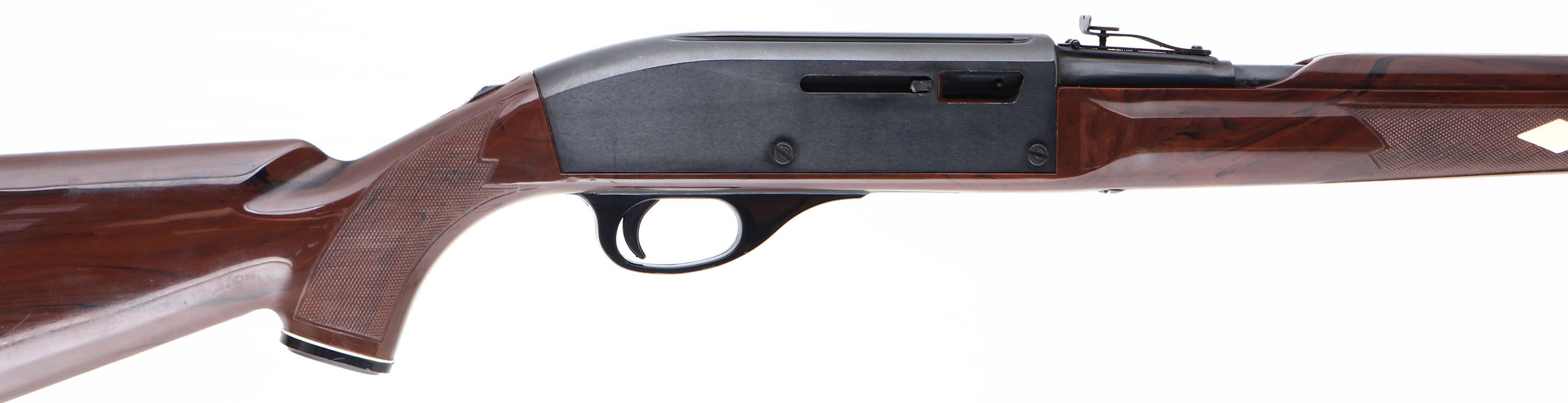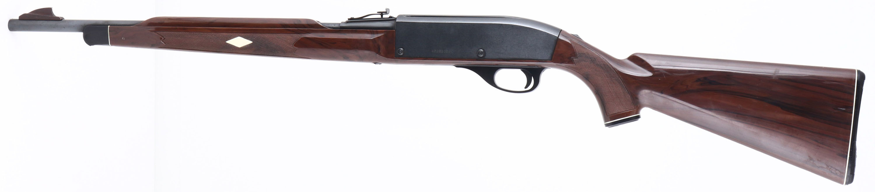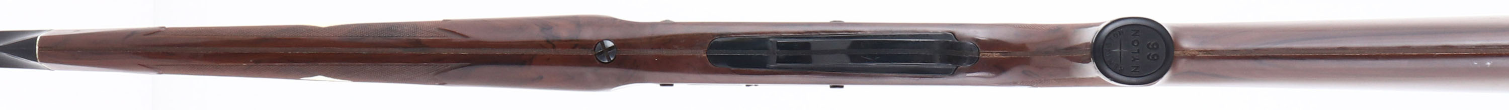 Remington, Model 66 NYLON Mohawk Brown, .22 LR. ONLY Cal., MFG. 1983, SN: A2288022, Semi-Auto Rifle, 19 1/2'' round barrel, Tube fed. The original checkered & pistol grip brown synthetic, stock is excellent & solid, with minor scratches & scuffs. Metal retains 98% of original black finish on barrel & 95% on receiver. Barrel is a factory replacement, as it carries a different SN# & barrel carries factory repair codes. Factory front & rear sights. Bore is excellent. Loaded through a tube in the stock. The bolt cocking handle is broken off. A fun shooting rifle. FFL Req. - Value: 100 to 300