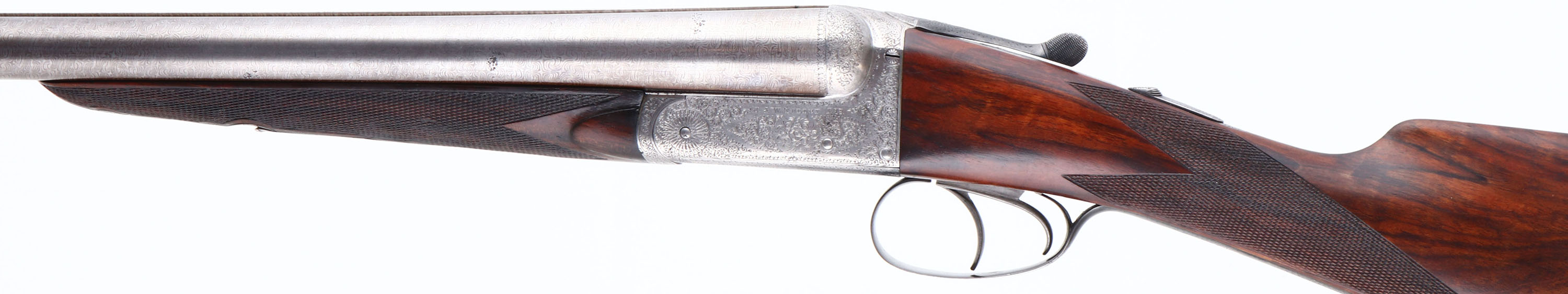 J&W Tolley, Hammerless Shotgun, CAL: 12GA, MFG: 1890's - early 1900's, SN: 867, Break Action SxS Shotgun, 28'' barrels. The rib is marked ''J&W TOLLEY LTD MAKERS, ST. MARYS SQUARE BIRMINGHAM''. Both sides of the receiver are marked ''J&W TOLLEY LTD''. The floor plate & water table have numerous markings & proof marks. The lower tang & forearm display the SN'' 867'', while the floor plate & barrel are marked ''8672''. The original, checkered & highly figured straight grip wood stocks are very excellent. There are minor contusions & handling marks to the original oil finish. The Damascus barrels display the thumbprint pattern, with areas worn to metal grey & toned to a brown patina. The receiver, buttplate heel & toe, upper/lower tangs, break lever, trigger guard, barrel ends, rib & forearm metal components are all fully & beautifully hand engraved in an ornamental scroll pattern, with floral accents. The receiver remains a polished satin silver & the bottom plate of the receiver, trigger guard/lower tang, & break lever all being blued, rating 85% overall, with areas worn silver. Bores are excellent & minty. The solid rib holds a single front bead. Checkered & engraved heel & toe buttstock. Double triggers. Blank oval name shield. A beautiful English made shotgun.* FFL or C&R Req. - Value: 2000 to 3000