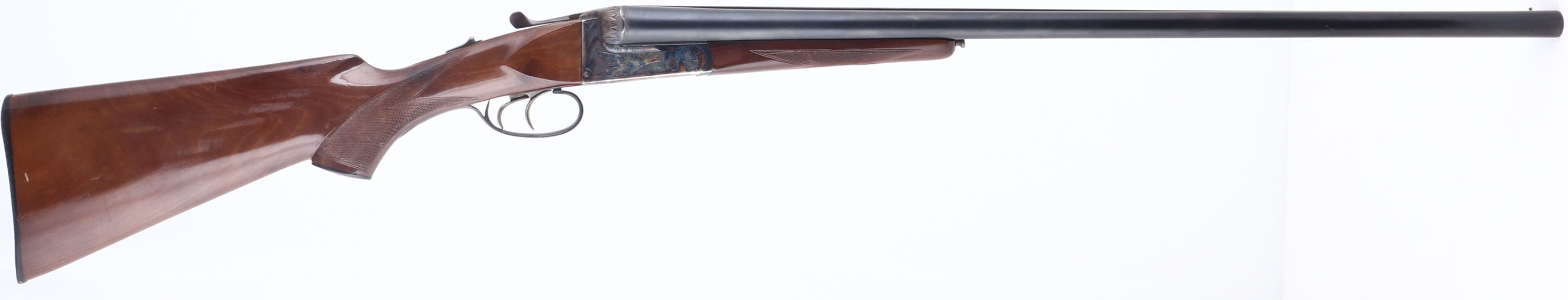 Gorosabel, Sidelock, CAL: 12GA, MFG: 1970, SN: PG26320, Break Action SxS Shotgun, Choke: Full/Mod, 27 3/4'' barrels. The checkered & capped pistol grip wood stocks are excellent. There are contusions, scrapes & dings to the high gloss finish. The restored metal blue finish on the barrel rates 95%. The receiver, barrel ends, break lever & trigger guard are beautifully hand engraved, with ornamental patterns & birds on either side. The receiver is case-hardened, retaining full case-colors. Bores are excellent. The solid, matted rib holds a front bead. Weaved pattern plastic buttplate. Double triggers. A nicely restored Spanish shotgun. FFL or C&R Req. - Value: 300 to 700