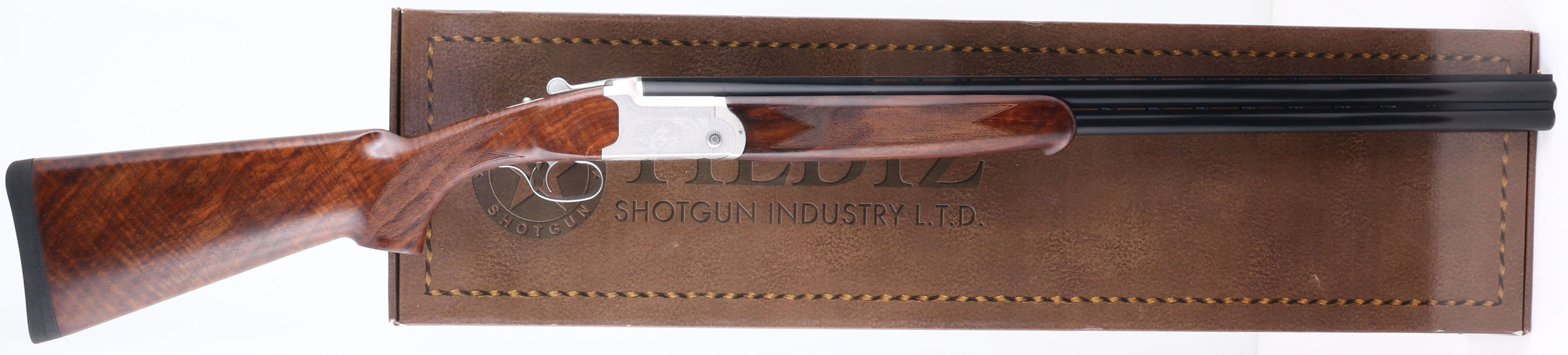 NEW, Yildiz, SPZ ME/20, CAL: 20 GA, MFG: Modern, SN: U78705, Break Action O/U Shotgun, Choke: 5pc Mobilchoke System, 28'' barrel with dual ventilated rib. The deluxe Turkish walnut, checkered flat pistol grip wood stocks are excellent. The 7075 white alloy receiver is excellent & the metal blue finish on the barrels rates 100%. The receiver, trigger guard & break lever display an intricate engraving, a duck on either side of the receiver in a pond setting, a dove on the bottom in a similar setting & ''YILDIZ SILAH SANAYI'' also on the bottom, next to the trigger guard. All engravings are bordered by an attractive ornamental/floral pattern. Bores are excellent. The barrel holds a single front bead. Buttstock carries a solid black rubber recoil pad. Comes in box with original packaging, owners manual, choke tool & extra chokes. This is a NIB gun, never fired. A great addition to any collection! FFL Req. - Value: 1000 to 1500