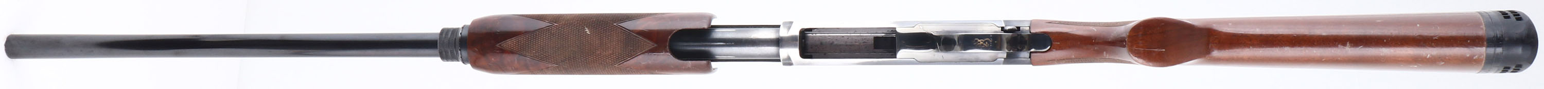 Browning, Model BPS Field Model 1 Hunter, CAL: 12 GA, MFG: 1991, SN:25084NZ152, Pump Action Shotgun, 3'' MAG, Choke: Invector tubes, 28'' Ventilated rib barrel. The checkered & flat pistol grip wood stocks are good & solid, but display numerous scrapes, scratches & dings to the original finish. The metal blue finish rates 90% on barrel, 80% on the receiver. The receiver is nicely engraved with vignettes of pheasants & ducks amongst scroll work. Bore is excellent. The ventilated rib has one loose post & holds a single front bead. Buttstock carries a Uncle Mikes ventilated recoil pad. Serrated slide release is located at the rear of the trigger guard. Bottom ejection throws empty hulls downward. Ambidextrous top-tang safety switch. Gold tone trigger. Comes with its original box, with two additional chokes & tool. FFL Req. - Value: 300 to 500