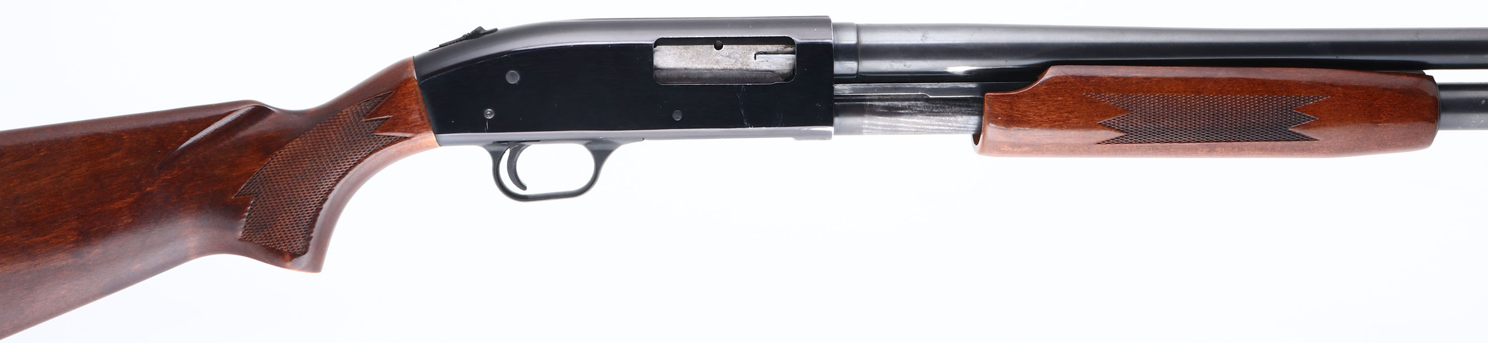 New Haven by Mossberg, Model 600AT, CAL: 12 GA, MFG: 1977-98, SN: H285282, Pump Action Shotgun, 2 3/4'' or 3'', Adjustable Choke, 28'' Ventilated rib barrel, with choke. New Haven is one of O.F. Mossberg & Sons' private, promotional brands. The New Haven 600 is identical to the Mossberg 500 from O.F. Mossberg & Sons, with the addition of an anti-rattle system in the magazine tube. This 600AT model came with the adjustable C-Lect Chokes. The original checkered & flat pistol grip wood stocks are excellent, with some small handling marks to the otherwise excellent original finish. The original metal blue finish on barrel & black anodized finish on the receiver both rate 90% overall, with loss due to edge wear, light scratches & the pump action. Bore is very good. The barrel holds a front bead. Stock carries a Pachmayr White Line ventilated recoil pad. FFL Req. - Value: 200 to 400