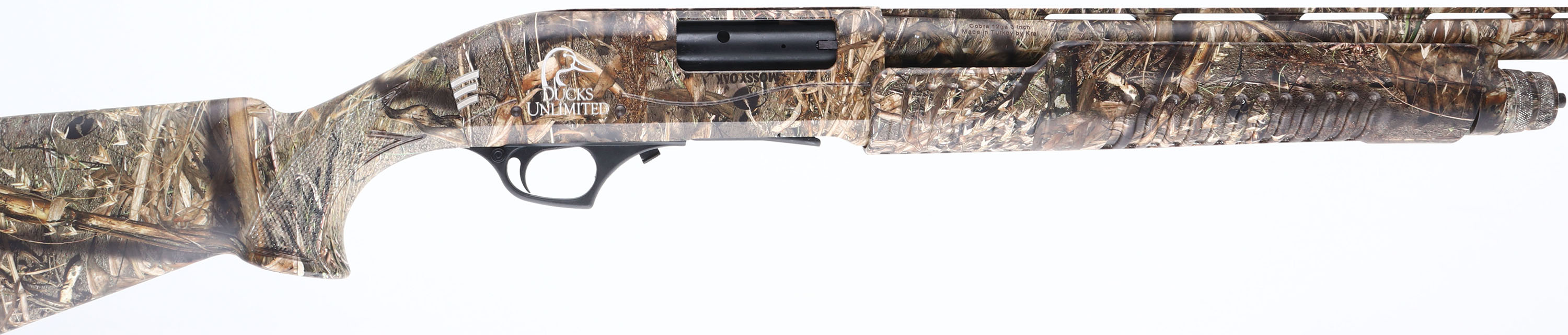 BOXED TriStar, Model Cobra, Ducks Unlimited CAL: 12 GA, MFG: Modern, SN: KP15DU0284, Pump Action Shotgun, Screw-in chokes, 28'' Ventilated barrel. The original flat pistol grip checkered & grooved forend synthetic stocks are excellent. The entire gun is covered in Mossy Oak Duck Blind camo pattern, which is excellent. The same camo finish on the barrel & receiver is excellent. The ventilated rib holds a green fiber-optic front sight. Buttstock carries a ventilated recoil pad. Integral sling provisions. Comes in its original box, with owners manual & choke tube case holding two extra chokes & tool. FFL Req. - Value: 300 to 500