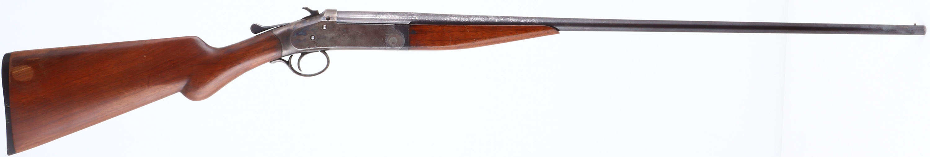 Iver Johnson, Model ''Champion'', CAL: 44, MFG: 1891-1919, SN: 42062, Break Action Single Shot Shotgun, 30'' barrel. The original & refinished round knob pistol grip wood stocks are excellent. There are minor contusions & scrapes to the finish. The metal blue finish on the barrel has worn to a mix of remaining original blue, metal grey & spotting toned to a brown patina. The receiver is case-hardened, worn to metal grey & toned to a brown patina, with faint case-colors remaining. Bore is excellent & bright. The barrel carries a single front bead. I.J grooved plastic buttplate. This shotgun was originally made for 44cal shotshells that were produced during the era. These guns were considered versatile game guns for use on the frontier. FFL or C&R Req. - Value: 150 to 350