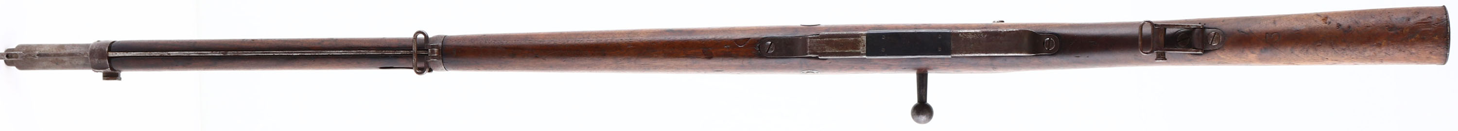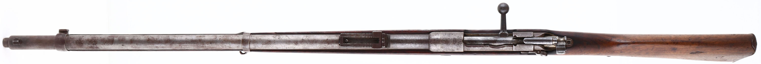 Danzig, Model: 88/05, Cal: 7.92x57mm, MFG: 1891, S/N: 9049Z, Bolt Action Rifle, 29 1/4'' Barrel. The straight wrist wooden stock is very good with scratches/dents & wear from use & age, one ''Y'' stamped into bottom of stock in front of magazine floorplate, faint cartouche on bottom of stock between trigger guard & rear sling swivel, ''3'' stamped into bottom of stock behind rear sling swivel, left side of stock stamped ''3'', three circles impressed to left side of stock, looks to be damage and not factory, two faint cartouches on right side of stock, metal is proud to wood at toe & right side of stock. Metal has toned to a even gun metal gray with brown patina & rust speckling, Receiver's were left in the white (not blued) from the factory, left side of receiver is marked with S/N, ''GEW.88'', ''S'', ''B'', ''D'', top of receiver is marked with, ''S'', Crown over ''DANZIG'', ''1891'' & proof marks, Left side of barrel is marked with S/N, bottom of magazine floorplate is marked ''J'', bolt has Turkish markings on it & S/N on bolt is in Turkish & appears to read ''008'' which makes it a S/N mismatched bolt, left side of rear sight base is marked, ''79'', left side of rear barrel band is marked with X'd out unit markings, left side of front barrel band is marked, ''76.R.4.174.'' which is a unit marking to where this rifle was issued to in the German military. Bore is very good, bright light roughness in spots. Barleycorn front sight, V-notch ladder rear sight that's marked in Turkish which reads ''5'' to ''20'' . Metal buttplate worn to a gun metal gray with spots of light rust. Bottom sling swivels, has cleaning rod. When these guns were updated to the 88/05 pattern they changed the chambers to the updated cartridge dimensions but did not change the barrel, the original round was smaller then the newer round which is what is found today, we recommend getting the bore checked & only hand loading ammo for these rifles with the proper bore dimensions, they are not know to blow up using the bigger sized bullet but will wear out the barrels considerably faster & is not recommended, & the action is not as strong as later designs & is not recommended to fire higher pressure loads through this rifle. Antique No FFL Req. - Value: 300 to 600