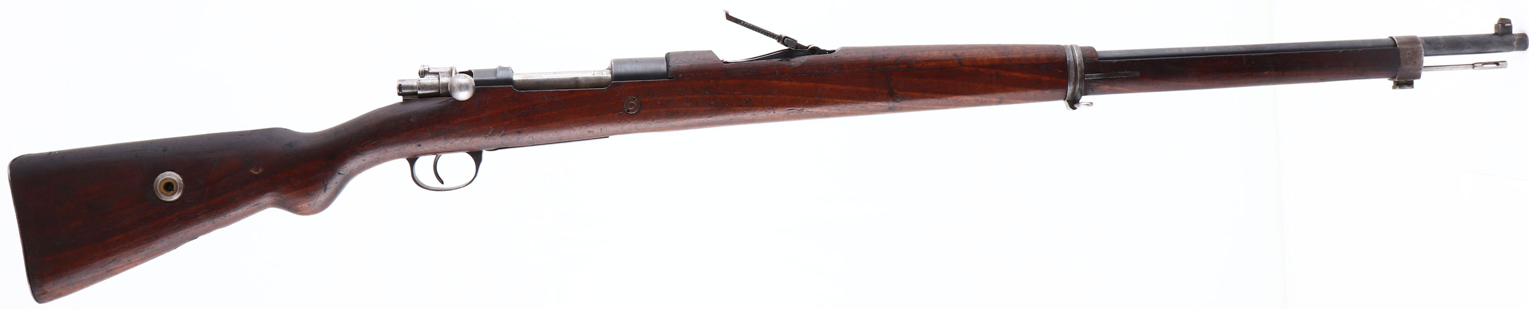 Asfa Ankara. Model: M38. Cal: 7.92x57mm. MFG: 1940. S/N: 8642X. Bolt Action Rifle. 29'' Barrel. The semi pistol grip stock is very good with scratches, gouges, oil darkening & wear from use/age. Bolt disassembly disc in stock, ''3'' Star ''0'' stamped into bottom of stock Infront of magazine. The metal finish rates 70% overall with spots worn to a gun metal gray & spots of brown patina. Left side of receiver is marked with S/N, top of receiver is marked ''T C'', ''AS FA'', ''ANK ARA'', ''K.KALE, ''1940'', Crescent Moon/ Stars, end of barrel is stamped with importer, S/N mismatched bolt. Bore is very good, bright & shiny. Barleycorn front sight, V-notch Tangent rear sight marked 1 to 20. Metal buttplate with wear & brown patina. Rear sling swivel is missing, has cleaning rod. A excellent shooter. FFL or C&R Req. - Value: 200 to 400