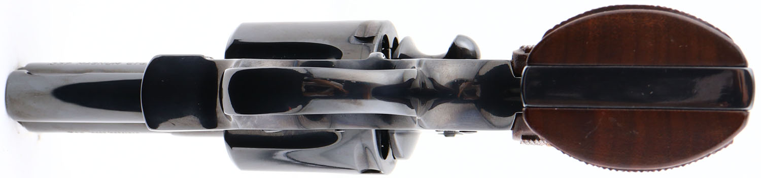 BOXED, Colt, Model Python, (I3620) CAL: .357 Magnum, MFG: 1984, SN: K84762, Double Action Revolver, 2 1/2'' barrel. The Colt Python was introduced as a premium model in 1955, in caliber .357 Magnum. The Python is built on the large I-frame & has a reputation for accuracy, smooth trigger pull, & a tight cylinder lock-up. It has a 6-shot swing-out cylinder & was available in Python blue, Royal blue, Python nickel & Python stainless steel finishes. Some firearm collectors & writers have described the Python as ''the finest production revolver ever made''. It has a wide serrated target hammer, ventilated rib, & fully adjustable target quality rear sights. The left side of barrel is stamped ''PYTHON 357 .357 MAGNUM CTG ''. The Rampant Colt gold medallion, checkered walnut grips on this example are mint. The high polish blued finish is near mint. Bore is mint. The satin finished top of the ventilated rib barrel holds a screw height adjusting ''U'' notch rear sight & front blade sight. This gun comes in its original Colt wood grain box, with instruction manual. Consignor's note claims the revolver was never shot outside the factory test. Still has factory grease on cylinder head so likely true. Basically NOS, & very collectible & desirable in the rarer 2 1/2'' variation. FFL Req. - Value: 3000 to 4000
