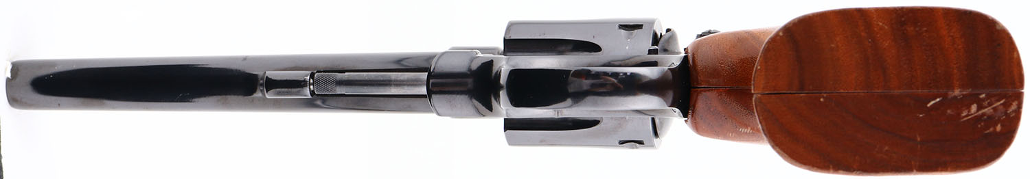Smith & Wesson, Model 17-3, CAL: 22LR, MFG: 1975, SN: 8K29527, Double Action Revolver, 5 7/8'' barrel. The S&W brass logo medallion, checkered wood grips are excellent. There are minor dings & handling marks. The metal blue finish rates 99% overall. The hammer & trigger are case-hardened, retaining full case-colors. Bore is excellent. The frame holds an adjustable rear sight & elevated blade front sight. A high condition 17-3. FFL Req. - Value: 700 to 1200