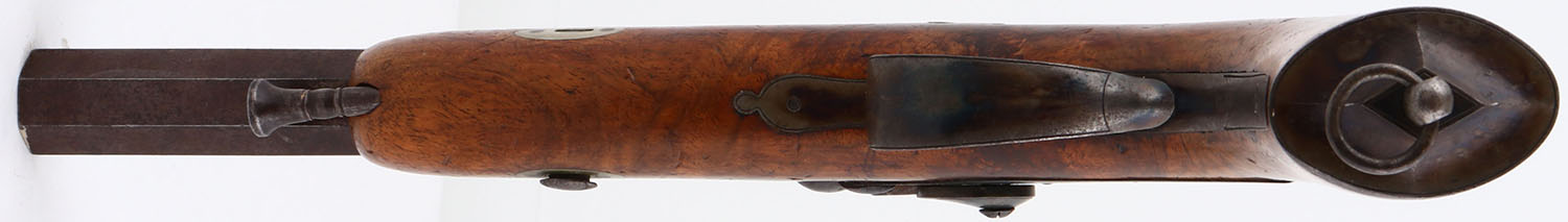 Pondevaux & Jussy, Percussion Pistol, CAL: 16mm, MFG: circa 1850, SN: NSN, Single Shot Black Powder Muzzleloader Pistol, 7'' octagon barrel. The capped pistol grip stock is very good & solid. There are numerous contusions & dings to the finish. The metal finish on the barrel has fully toned to a brown/plum patina. The side plate, barrel end/upper tang, hammer, trigger guard & grip cap are all case-hardened, with visible, but worn case-colors. Some rust pitting around the nipple. Smoothbore is good, with roughness & pitting. The barrel holds a fixed notch rear sight & small blade front sight. Lanyard loop present. An early French percussion pistol. Black Powder, No FFL Req. - Value: 400 to 1000