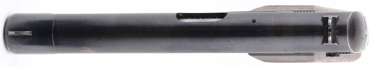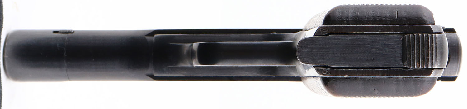 FN, M1922, CAL: 7.65 MM (.32 ACP), MFG: Mid 1943, SN: 196592, Semi-Auto Pistol, 4 1/4'' barrel. Made in Belgium. A blowback semi-automatic pistol designed by John Browning. Approximately 948,000 produced, mainly for the European market & WWII. The pistol incorporates the standard Browning striker-firing mechanism, a grip safety along with a magazine safety & an external safety lever (known as the ''triple safety'') in a compact package. The M1922 has the dubious distinction of being produced in larger numbers than any other firearm at the FN plant during the Nazi occupation. The German designations for the M1922 were Pistole 626(b) for the 7.65mm version & Pistole 641(b) for the 9mm Short version. M1922's found their way to all corners of the German government & military as officer's & official's sidearms. The primary user of the M1922, however was the Luftwaffe. M1922's accepted by the German military show one of three Army Weapons Office inspectors markings (Waffenamt stampings). This pistol has Nazi eagle symbols & ''WaA140'' stampings on the barrel, frame & slide. The original wood checked grips are excellent, with minor scuffs. The metal blue finish is 90%. Bore is excellent & bright. Notch & fixed blade sights. Original FN marked 8 round mag. FFL or C&R Req. - Value: 1000 to 2000