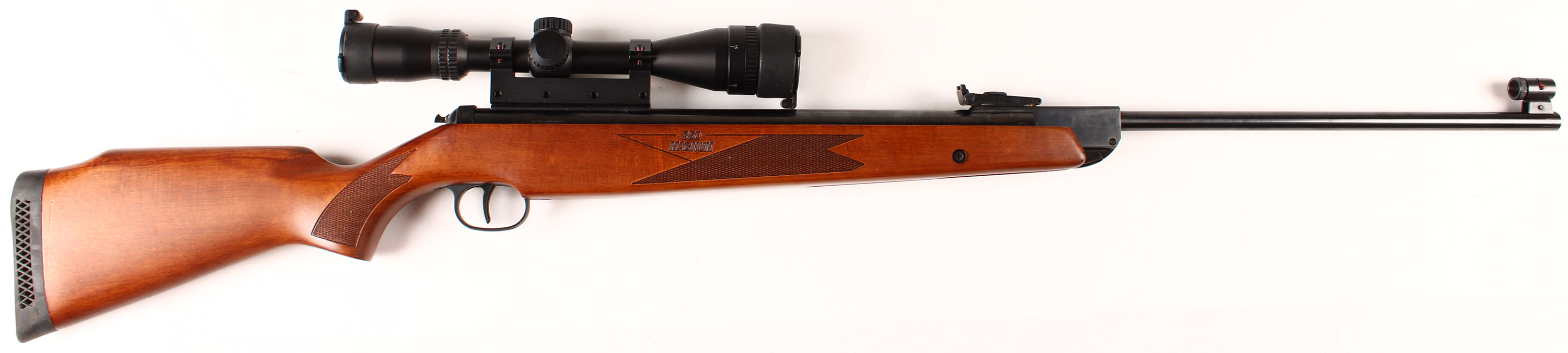 Umarex Diana, Model RWS 350 Magnum, S/N: 01336661, Caliber 22, Single pump action, 19 3/8'' barrel, checkered wood stock & Hawke 4-12x Scope. Grade: Excellent + - Value: 400 to 800