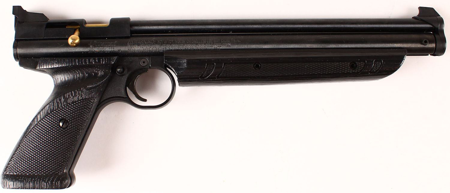 Crosman, Model 1322, S/N: 512B08389, Caliber 22, Bolt/pump action, 9 3/4'' barrel, checkered synthetic stock. Grade: Excellent + - Value: 20 to 80