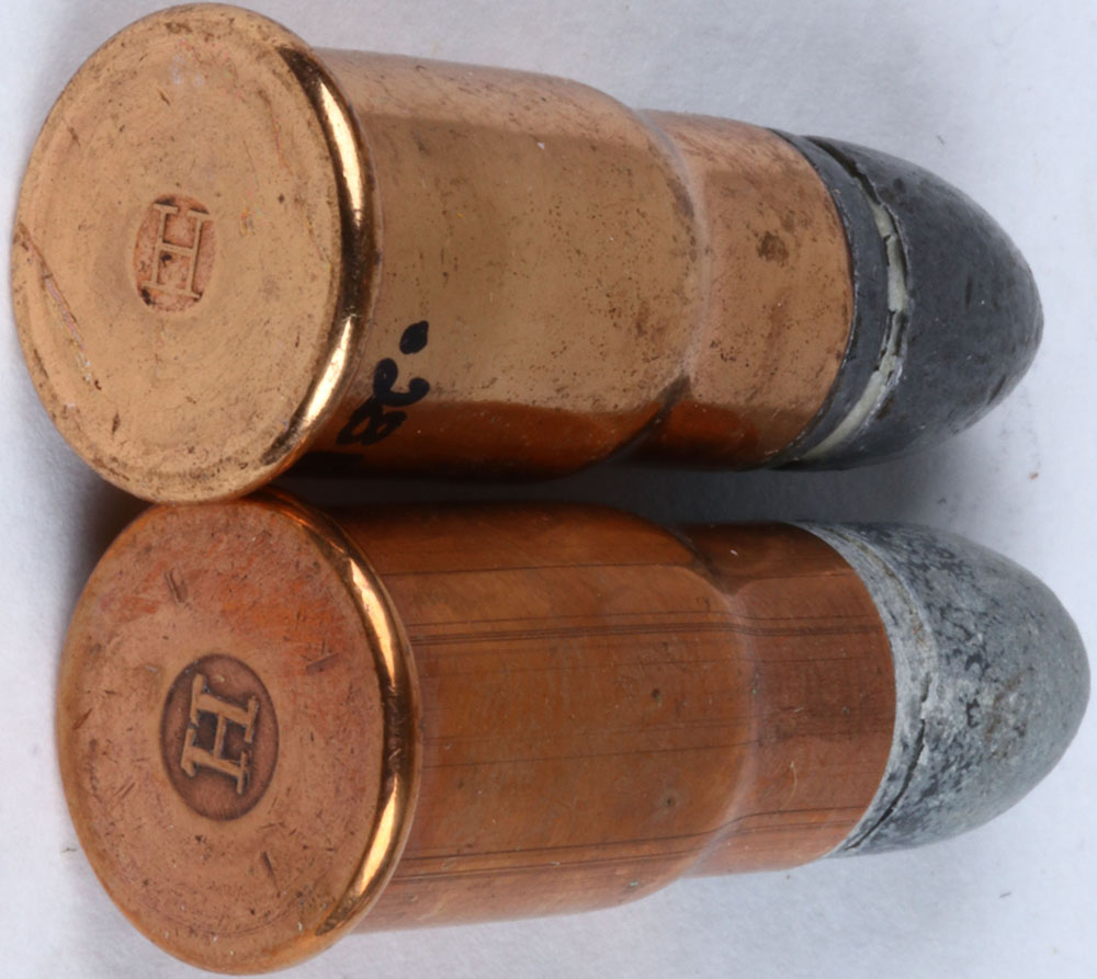 Lot of 2 H/S= raised med. Size ''H'' 56-46 Spencer R/F, board dummy, 2-cs. Holes, internal wood rod, F.N.L. 1-GR. H/S= raised, LRG. ''H'', 56-46 Spencer, F.N.L. 1-GR. Grade: Excellent - Value: 40 to 70