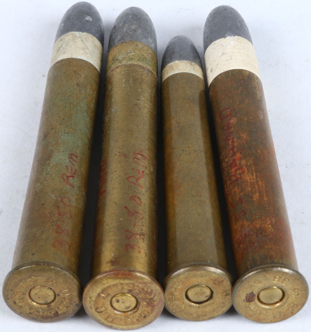 Lot of 4 (2.) H/S= ''S U.M.C. 38-50''. 2 1/4'' C.L. SM. Oval BR. PRI., P.P.L. F.N. (1.) H/S= ''S U.M.C.H 38-55'' 2 1/4'' Ballard loading, SM. Oval BR. PRI., P.P.L. F.N. (1.) H/S= '' S U.M.C. H 32-40'' 2 1/8'' Ballard loading, SM. Oval BR. PRI. P.P.L. F.N. Grade: Very Good + - Value: 20 to 50
