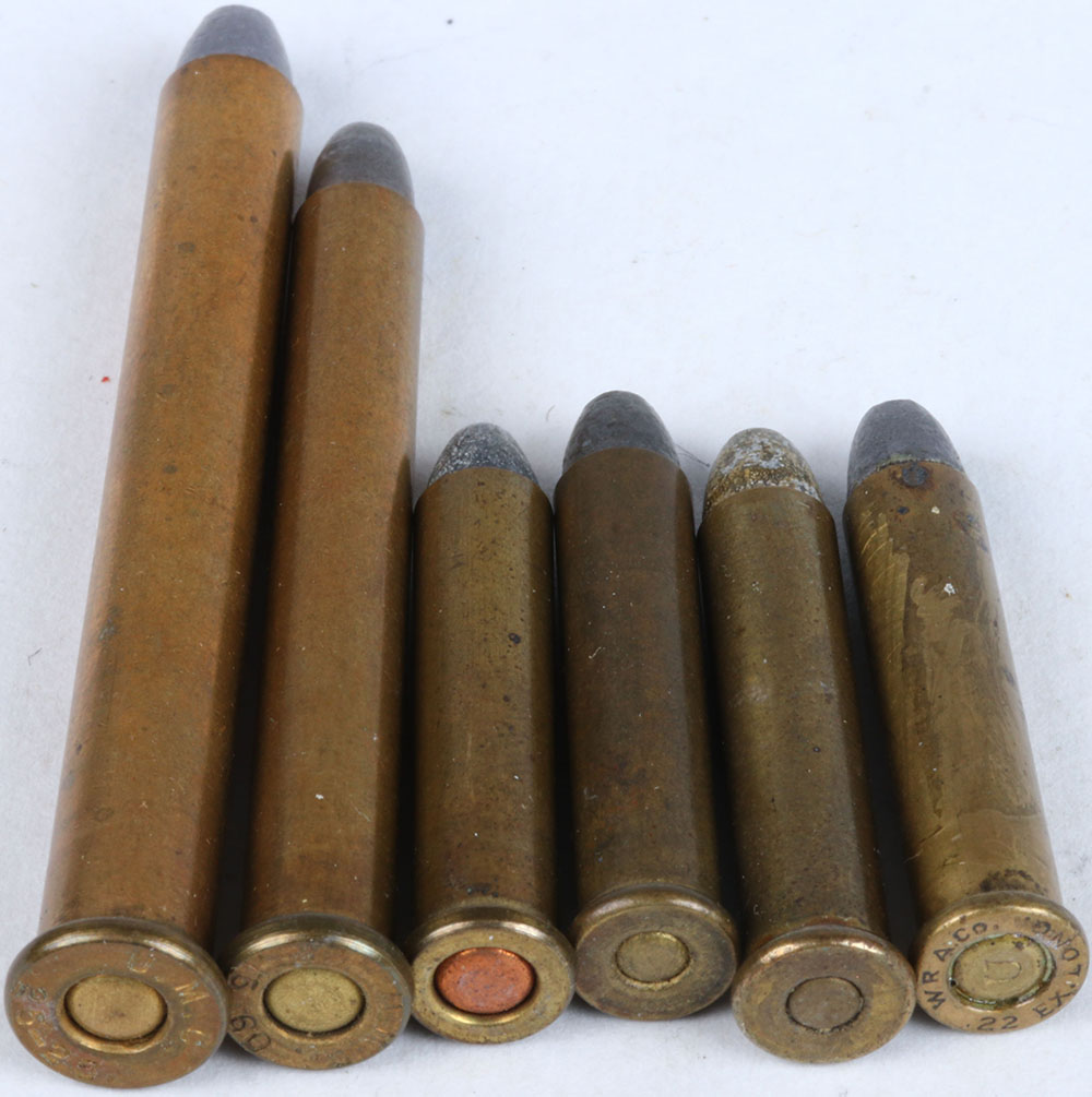 Lot of 6 (1.) H/S= ''U.M.C. 25-25 ''(Stevens) SM. Oval BR. PRI., F.N.L. (1.) H/S= ''U.M.C. 22-15-60'', (Stevens) SM. Oval BR. PRI., F.N.L. (4.) 3-H/S variations 22 Ex. Long , 3 PRI. Types, BR. CS., F.N.L. Grade: Very Good + - Value: 10 to 40