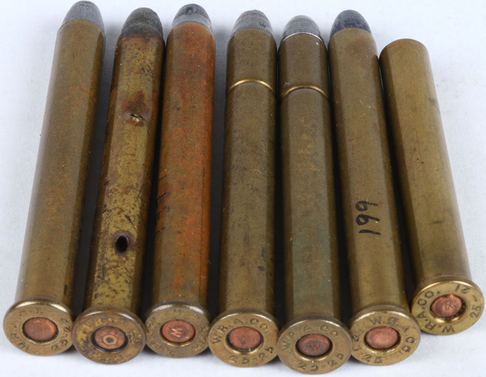 Lot of 7 variations H/S= ''W.R.A.CO. 25-25'' (Stevens) 2-CS. Holes board dummy, internal wood rod, SM. Oval COP. PRI., ''W''. F.N.L. H/S= ''W.R.A.CO. 25-25'' oval COP. PRI. ''W'' 1-CNN., F.P. TIN. F.N. H/S= ''W.R.A.CO. 25-25''. SM. Oval COP. PRI. F.N.L. H/S= ''W.R.A.CO. 25-25'' FLT. COP. PRI. ''W'' S.P. TIN. F.N. H/S= ''W.R.A.CO. 25-25'', oval COP. PRI. ''W'' 1-CNN., S.P. TIN F.N. H/S= ''W.R.A.CO. 25-25''. Oval COP. PRI. (No. CNN.) F.N.L. H/S= ''W.R.A.CO. 25-25'', oval COP. PRI., N.P.E. Grade: Excellent - Value: 20 to 40