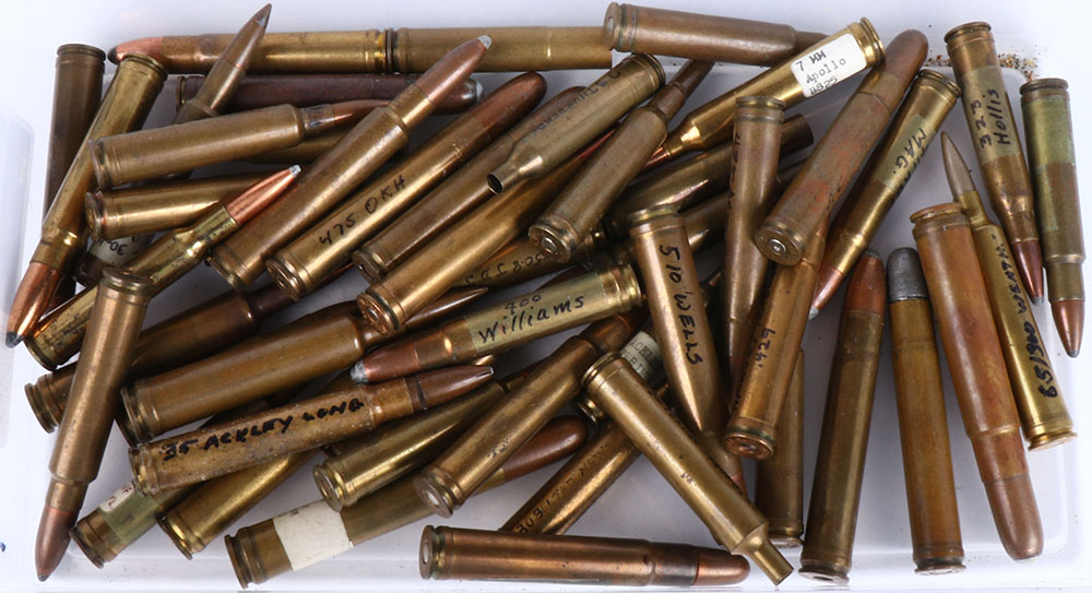 Lot of 50 wildcat's all diff. these are not H/S to WIC size CAL. But rather the headstamp it was piloted from includes, 475 A&M, 7MM apollo, 358 apollo, 400 williams, 270 durnam, 475 A&M MAG., 6.5 brooks, 510 wells, and on & on. No duplicates, Grade: Very Good + - Value: 40 to 150