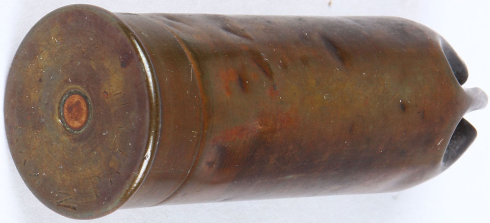 H/S: ''KYNOCH No 10 Patent'' '' 10 ga.! loaded brass shotshell, 2 3/4'' OAL with crimp. Grade: Very Good - Value: 2 to 50