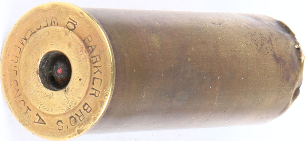 H/S: ''Parker Bros. 10 A West Meriden Ct.'', empty brass shotshell, 2 7/16'' OAL. Grade: Very Good - Value: 6 to 60