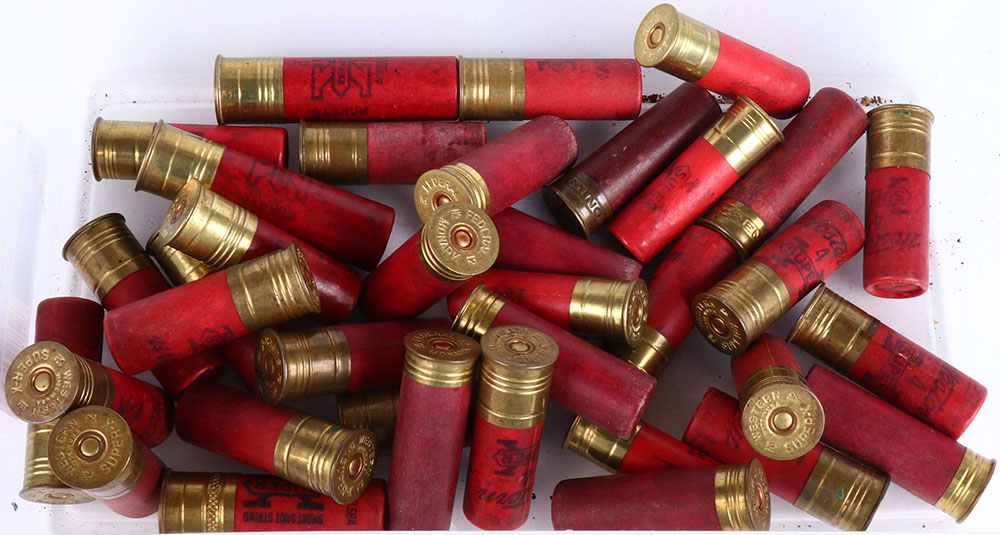 | Lot of 36 loaded paper shotshells, assorted gauges. Grade: Exce...
