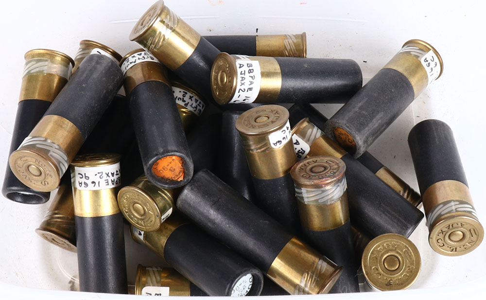 | Large lot of loaded paper shotshells. Grade: Excellent - Valu...