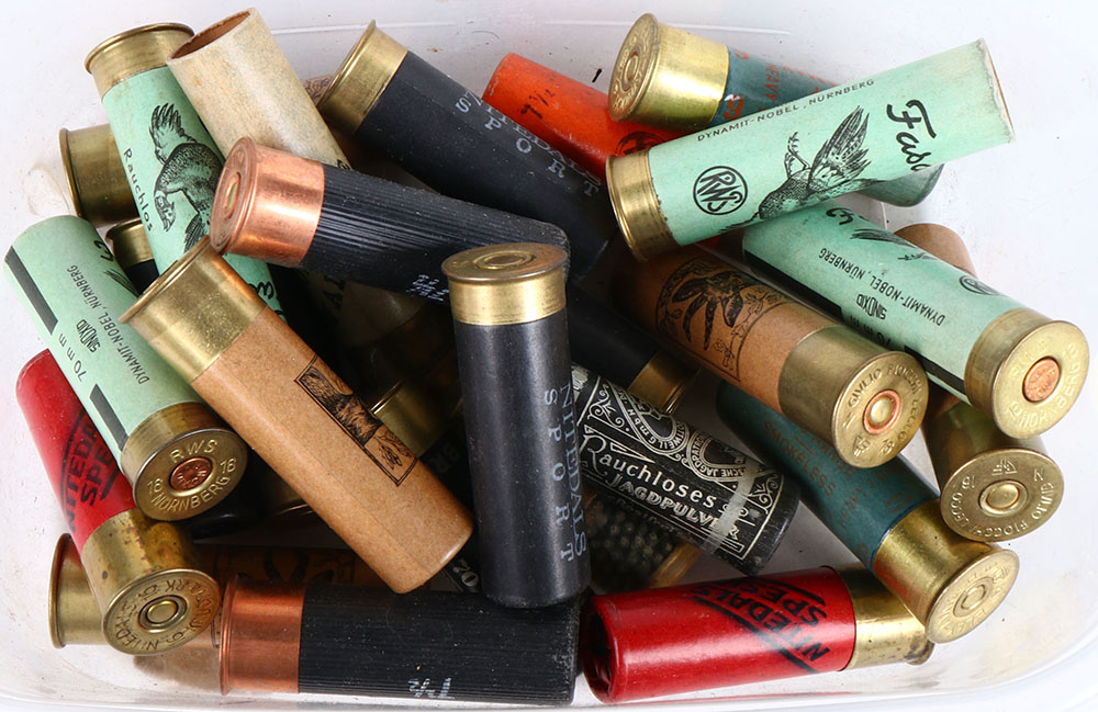| Large lot of loaded and empty paper shotshells. Grade: Excellen...