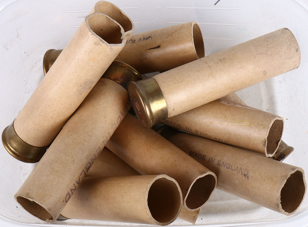 | Large lot of 11 empty paper shotshells. Grade: Excellent - Val...