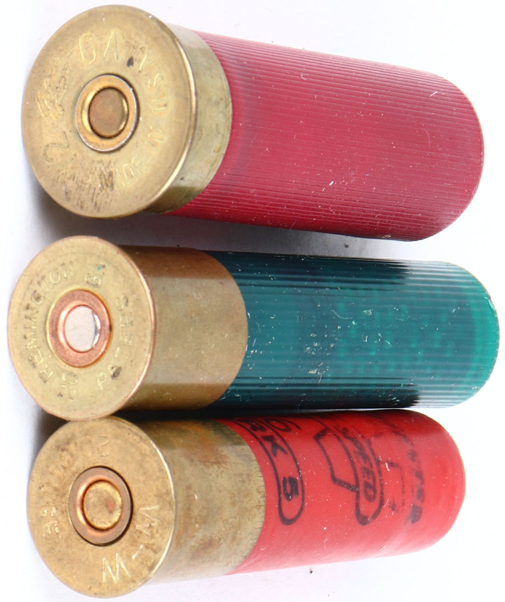 Lot of 3 loaded plastic shotshells. Grade: Excellent - Value: 4 to 50