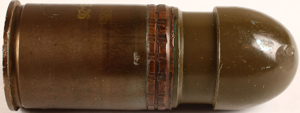 | US, 40mm shell & projectile, case is marked, ''CTG., 40MM. PR...