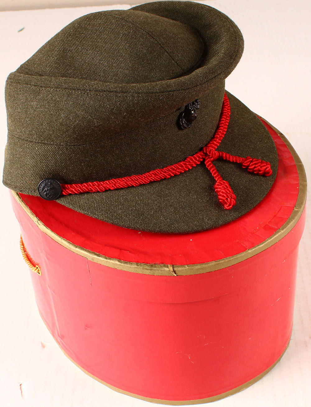 US, WW2 marines women's cap, size 21 1/2, shows little to no wear, comes with case. Grade: Excellent ++ - Value: 20 to 60