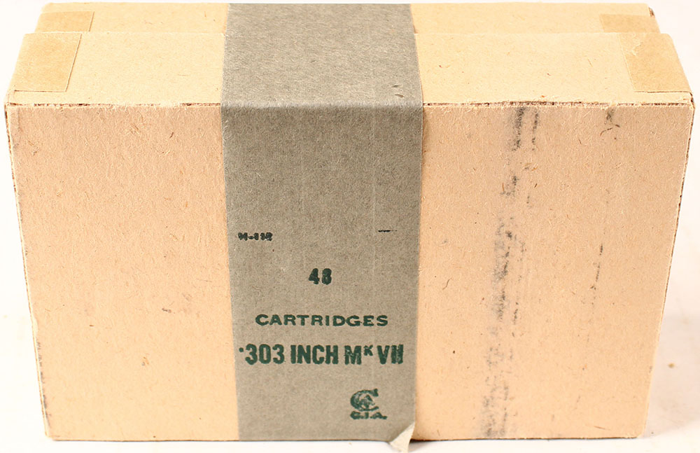 C.I.A., .303 Mk VII, 2pc, FULL & SEALED, buff box with gray label & green print, box is solid with rub marks. Grade: Excellent ++ - Value: 30 to 60