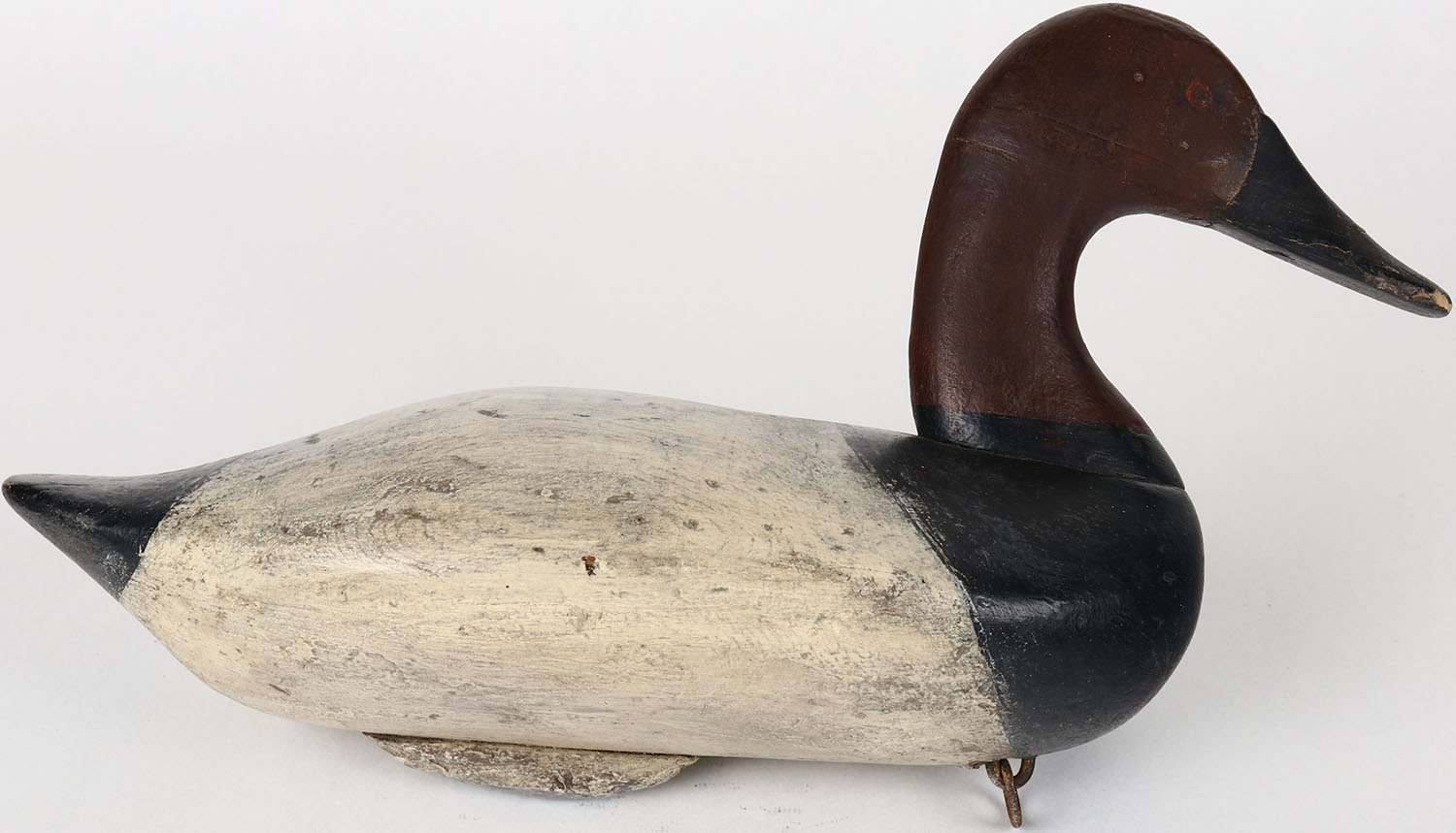 Canvasback Drake by unknown maker, MD, painted eyes, solid wood, structurally excellent, original paint. Grade: Excellent + - Value: 40 to 300
