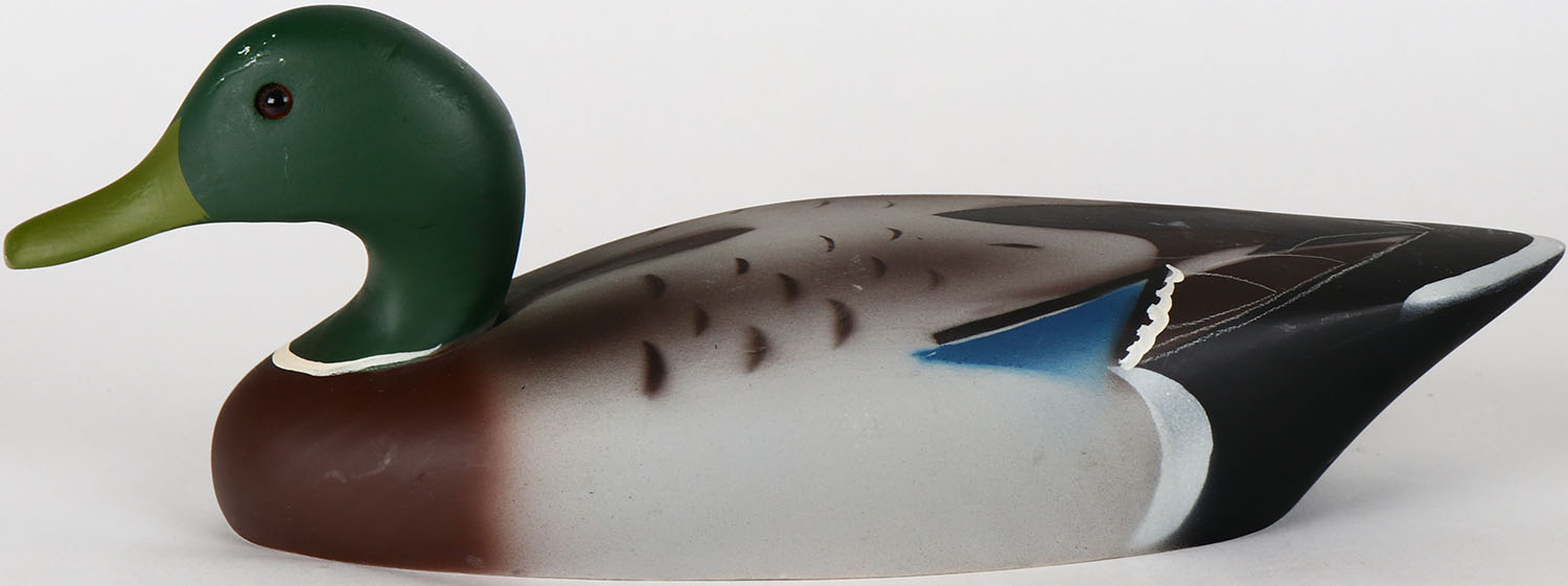 Mallard Drake by unknown maker, glass eyes, solid wood, structurally excellent, original airbrushed? paint. Grade: Excellent + - Value: 30 to 60