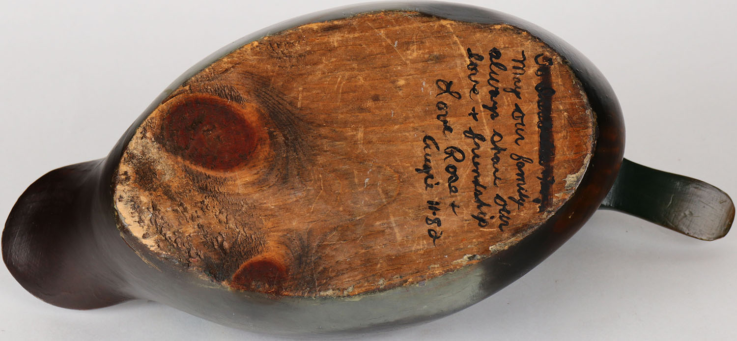 Mallard Drake by unknow maker, (note with 1982 date) glass eyes, solid wood, structurally excellent, original paint. Grade: MINT - Value: 20 to 40
