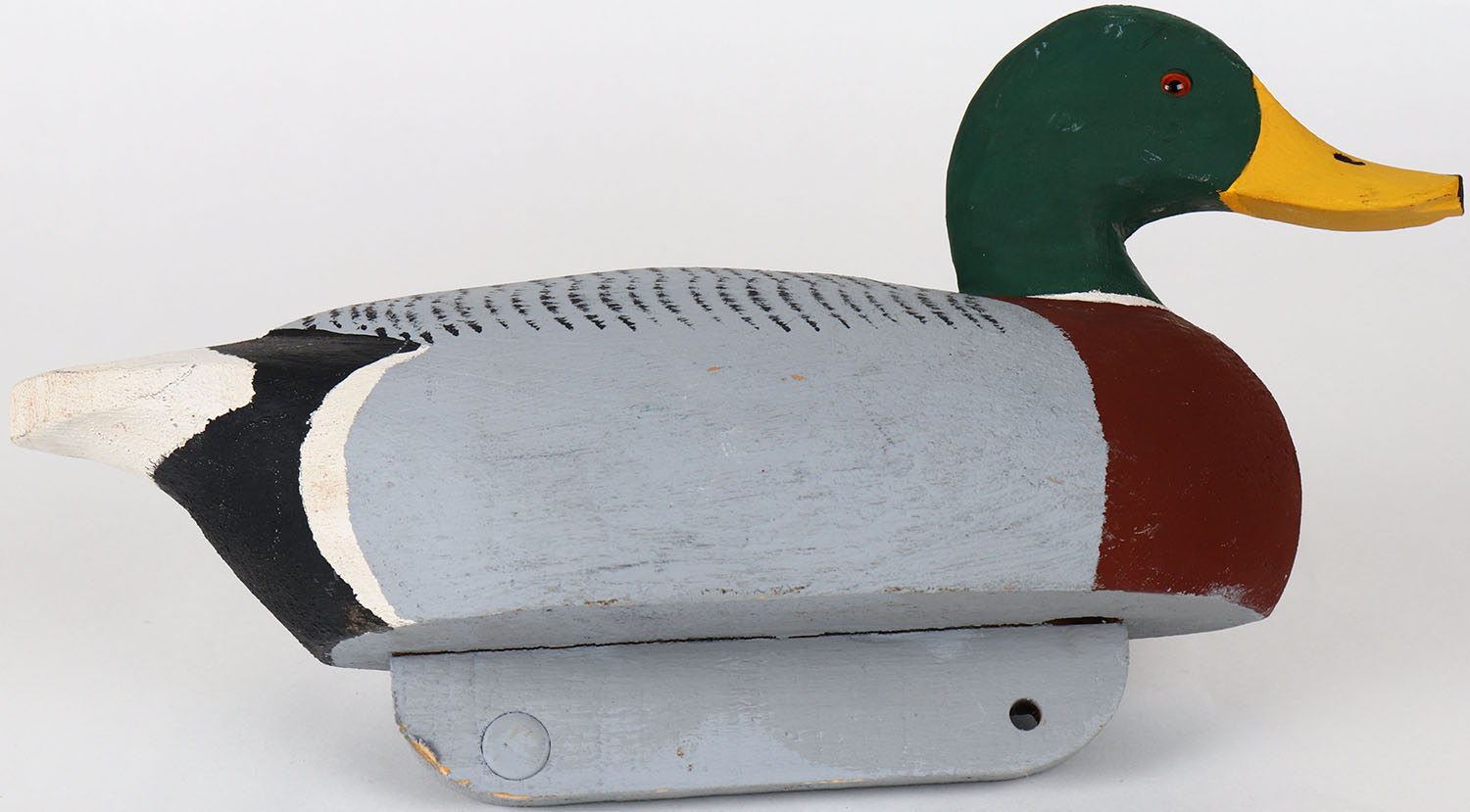 Mallard Drake by RLH, glass eyes, solid wood, structurally excellent, branded RLH on bottom, original paint. Grade: Excellent + - Value: 30 to 60