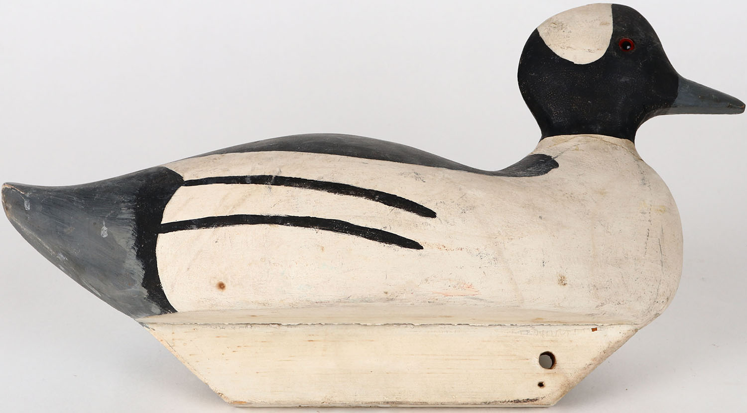 Bufflehead Drake by Tyler, glass eyes, solid wood, structurally excellent, branded TYLER on bottom, original paint. Grade: Excellent - Value: 30 to 60