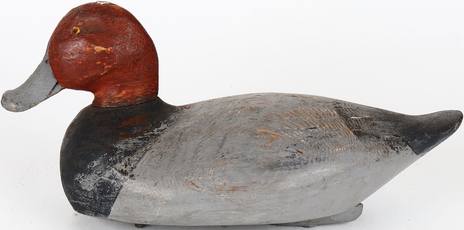Redhead Drake by CFM, VA/MD? painted eyes, solid wood, structurally excellent, branded CFM on bottom, original paint. Grade: Very Good + - Value: 20 to 40