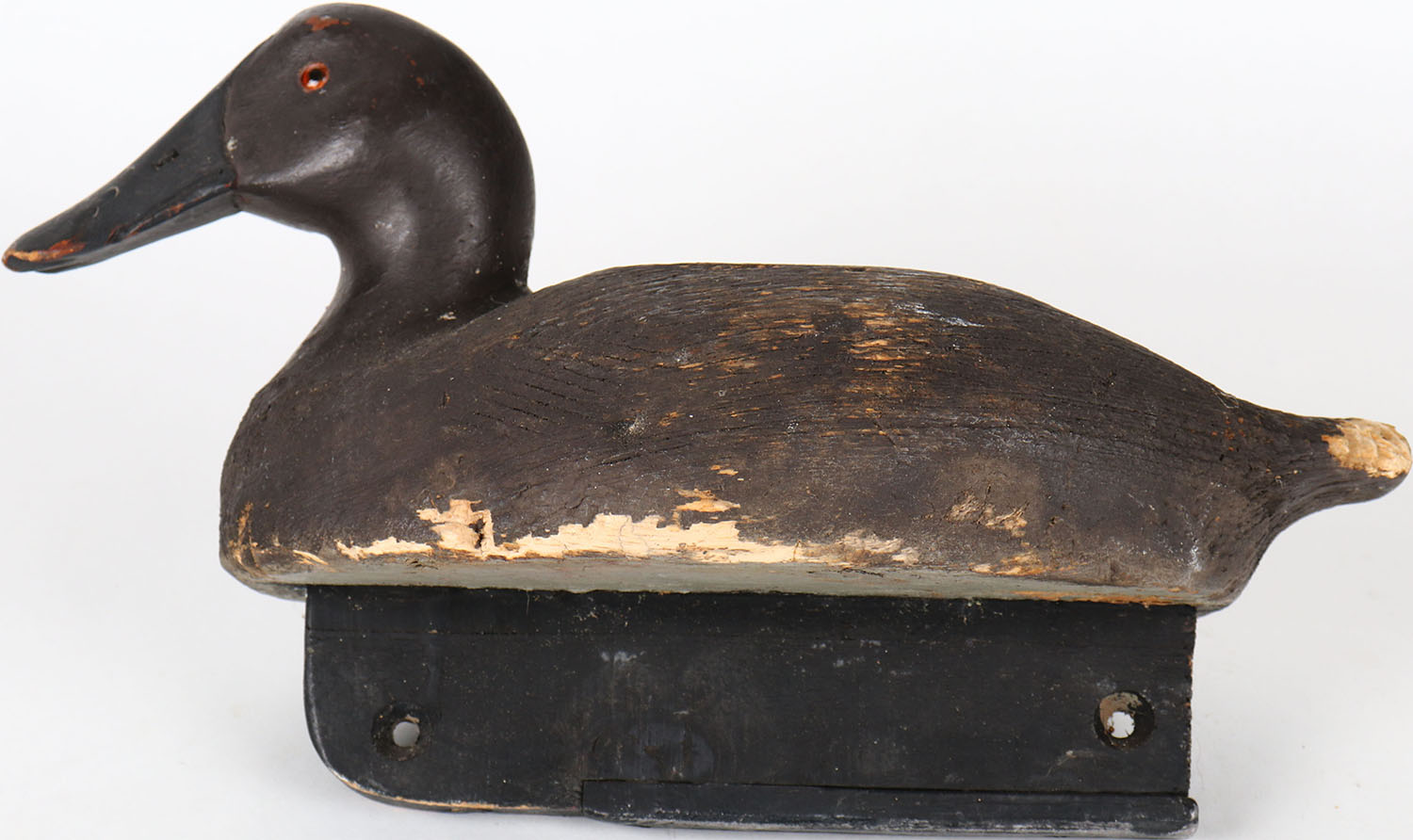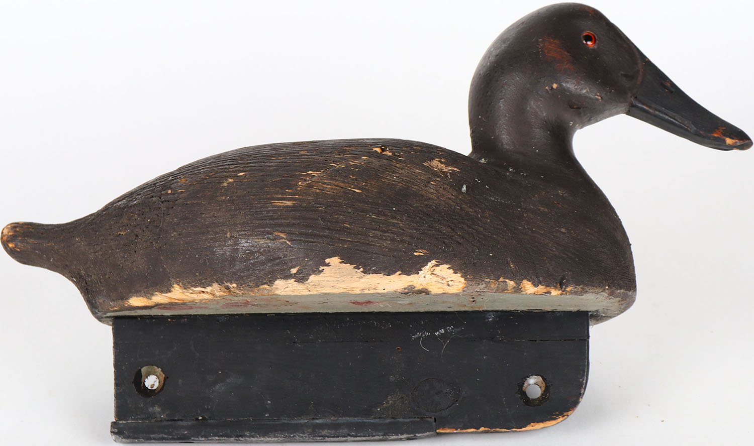 Canvasback Hen by unknown maker, glass eyes, hollow wood, structurally excellent, original paint. Grade: Very Good + - Value: 30 to 60