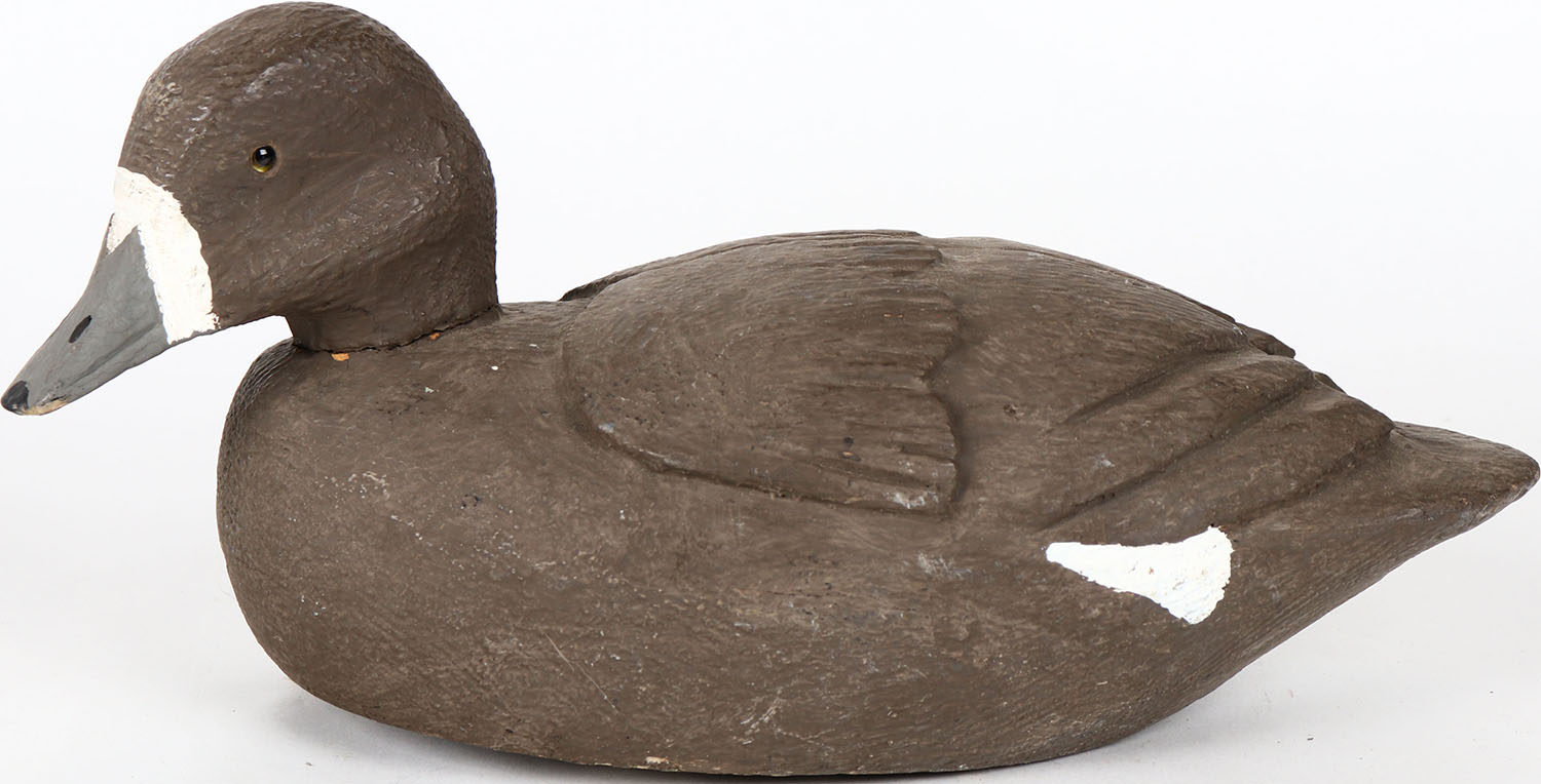 Bluebill Drake by unknown maker, glass eyes, solid wood, structurally excellent, original paint. Grade: MINT - Value: 40 to 80
